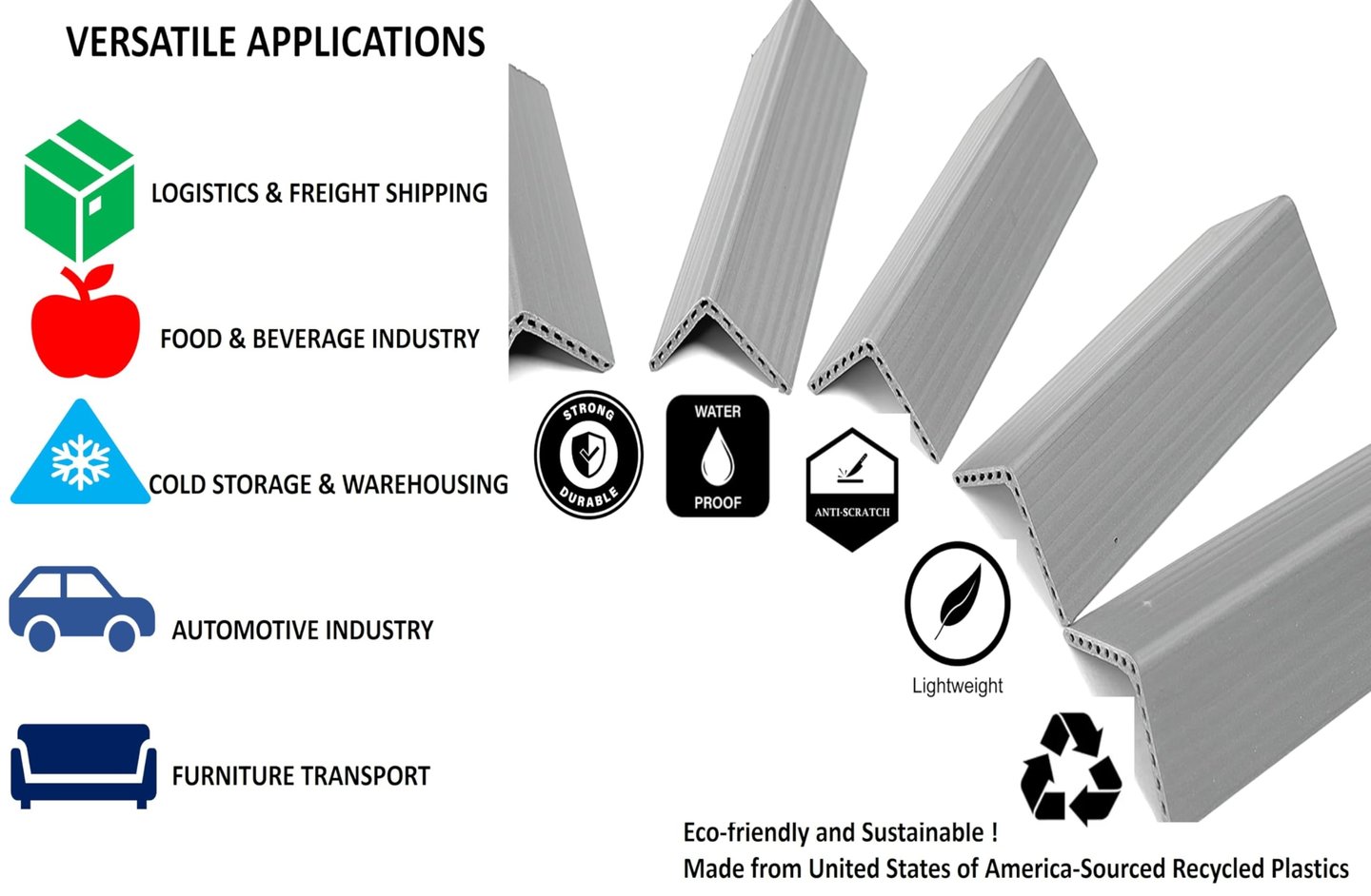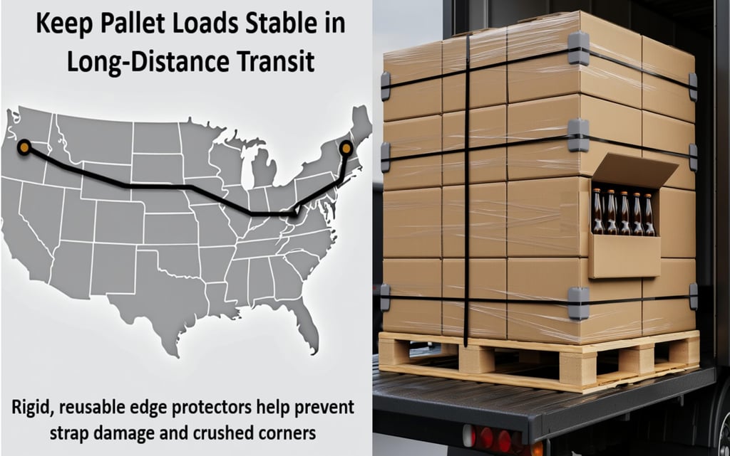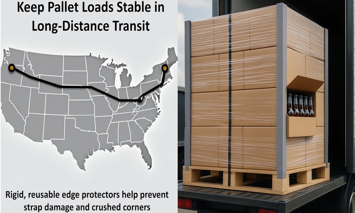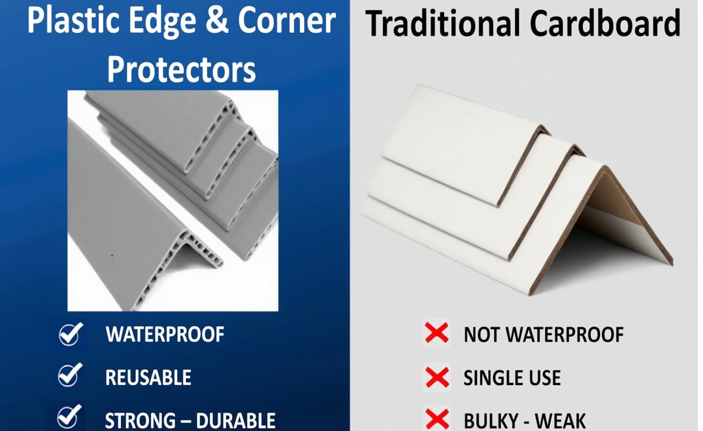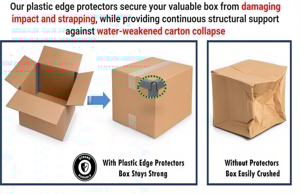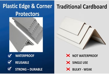 Durable plastic edge guards made from 100% recycled PVC for reliable cargo protection.